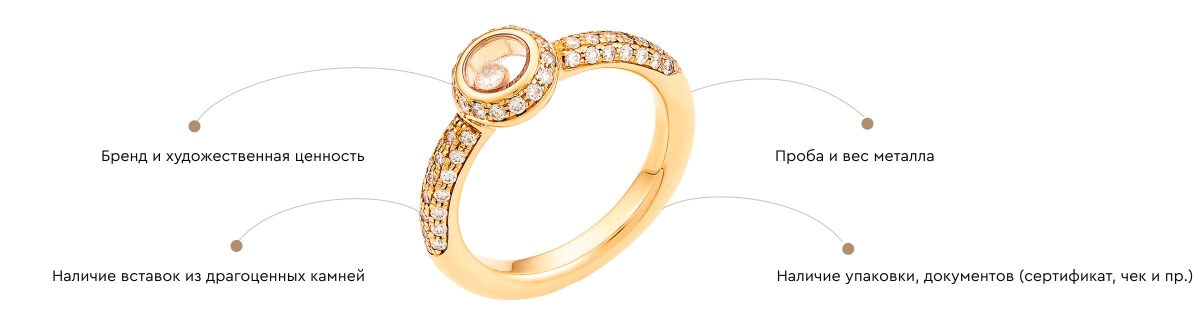Мы проводим предварительную онлайн-оценку для украшений известных брендов, а также изделий с сертификатами, бирками, содержащими описание всех характеристик.