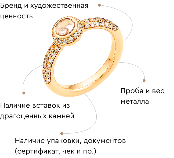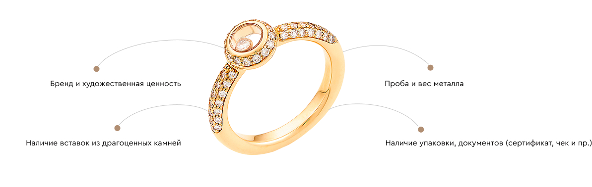 Мы проводим предварительную онлайн-оценку для украшений известных брендов, а также изделий с сертификатами, бирками, содержащими описание всех характеристик.